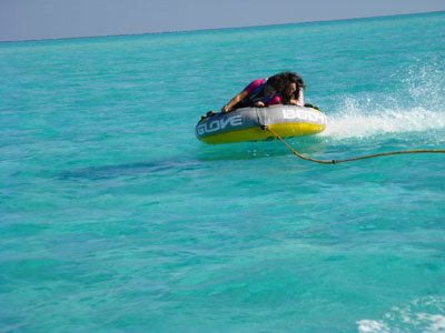 スピードボートで引っ張ってもらう高速水面移動浮き輪の総称だけれども、